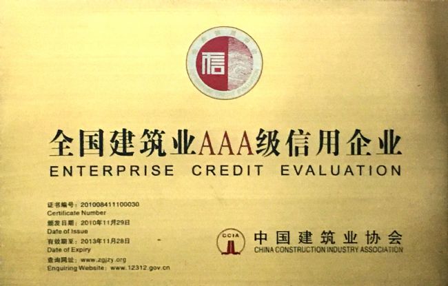 近年来,公司被评为“全国民营企业500强”(名列316位)、“全国五百家最大建筑业企业”、 “江苏省建筑业最佳企业”、“江苏省建筑业综合实力30强企业”、“泰州市建筑业十强企业”、“企业资信等级AAA级企业”,并被江苏省人民政府命名为“江苏省AAA级重合同、守信用企业”。
