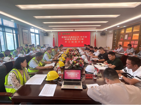 秋风送爽、丹桂飘香,在伟大的祖国七十四华诞之时,姜堰区老通扬运河—中干河绿道景观提升工程举行开工动员大会,吹响开工“集结号”。集团公司董事长李焕军、顾问颜大龙、苏州园科项目管理部、设计院、集团两河提升工程分区项目部、集团相关部门负责人40多人参加了会议。