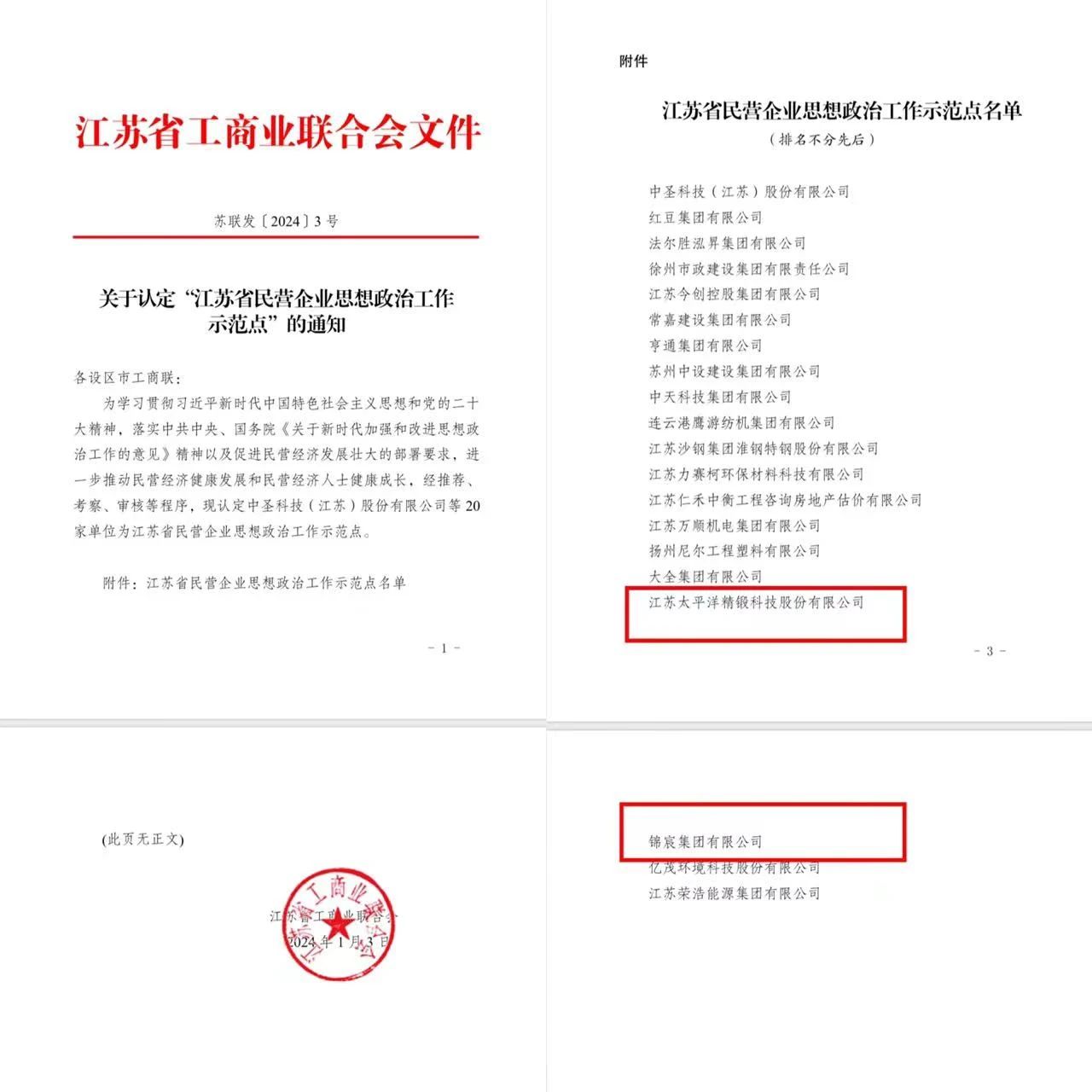 近日,省工商联公布了“江苏省民营企业思想政治工作示范点”名单,锦宸集团成功入选。
