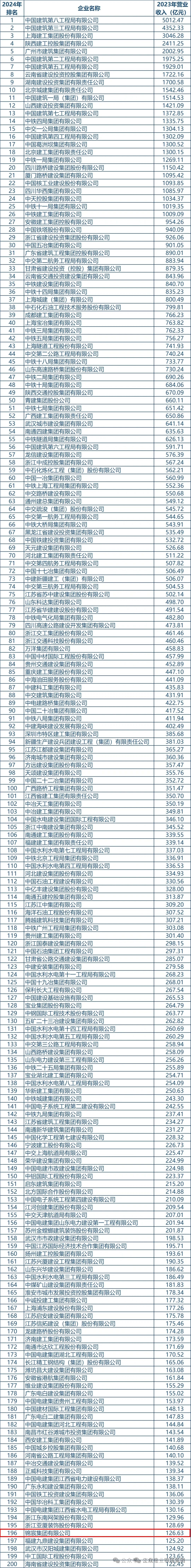 由中国建筑业协会建筑业高质量发展研究院、工程管理学报和北京中建协兴国际工程咨询公司联合组成的建筑业大数据应用研究课题组,近日发布了2024年我国建筑业企业200强排行榜、建筑业企业盈利能力200强排行榜和建筑业企业资产总额200强排行榜。