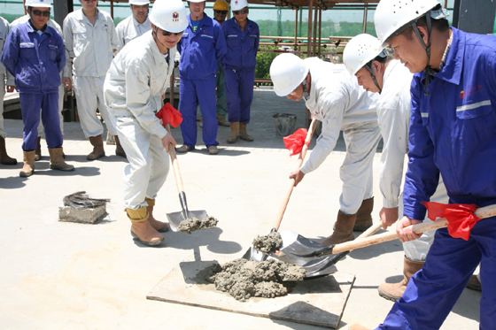 8月19日上午11点,中石油乍得基地乙方公寓楼在三楼顶层举行了隆重的封顶仪式。阳光国际乍得分公司总经理张忠、乍得基地工程项目部副经理马健,华油鑫业公司总监理工程师陈洪续,锦宸集团公司副总经理蒋存基,以及中石油乍得基地工程部的全体人员和部分施工方管理人员共同参加了封顶仪式。