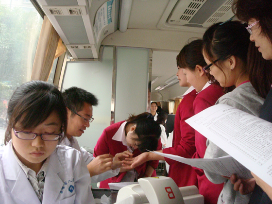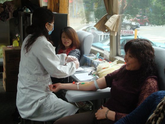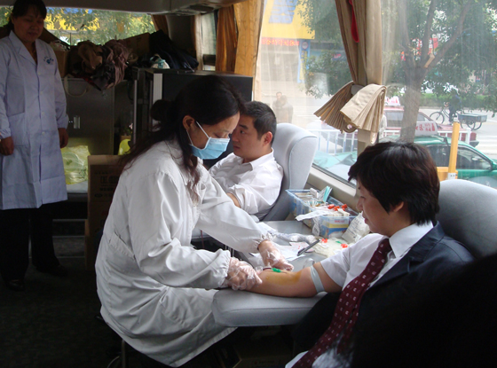 献血现场虽然天气较冷,但献血员工的热情高涨。其中锦宸大酒店的总经理钱月琴同志、锦宸百货的副总经理朱晓琴同志早早的带领报名参加献血的员工等在献血现场,他们中有管理人员、营业员、收银员、厨师、服务员等,但每个人都有个信念,就是献血救人义不容辞。有些同志是第一次献血,不免有些紧张,但一想到义务献血的深刻意义就不再犹豫,还有很多同志都是多次献血,他们基本每年都参加集团公司工会组织的献血活动。整个采血现场,填表、化验、注册、抽血等一套工作有条不紊地进行。