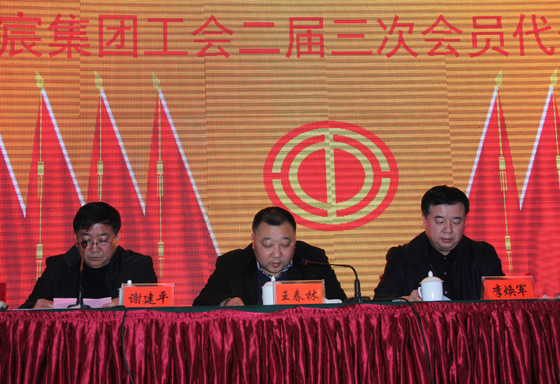28下午,集团公司在锦宸大酒店五楼大厅召开二届三次工会会员代表大会。会上,工会主席王春林同志作2013年度工会工作报告,集团公司李焕军总经理与王春林主席签订了集体劳动合同。