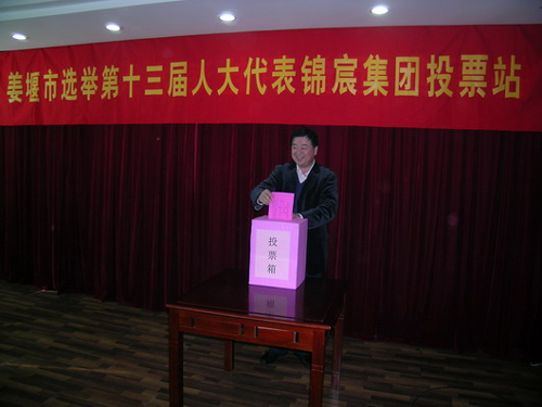 11月27日上午,根据姜堰市选举委员会部署,姜堰市第十三届人大代表换届选举锦宸集团投票站的投票工作顺利开展,锦宸集团董事长李焕军和公司员工在和谐的氛围中投出自己庄严的一票。