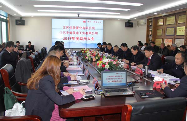 江苏恒佳置业有限公司、江苏宇辉住宅工业有限公司2017年度工作动员大会于3月8日下午在集团公司四楼会议室举行,恒佳、宇辉员工参加会议,合作单位有关负责同志列席会议,集团公司董事长李焕军等领导出席会议。